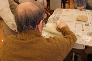 11月18日(水)に、介護居室「ロイヤルガーデン」の、ダイニングルームにおいて、肥後銘陶「高田焼(こうだやき)」窯元の青木先生をお呼びして、ご入居者さまにお皿の作り方を教えていただきました。ご入居者さまは、粘土を丸い形にされた後、お皿に模様を入れられました。出来上がった作品は先生が持ち帰り、窯で焼かれ年末には出来上がります。ご入居者の皆さまはお皿の出来上がりを楽しみにされています。