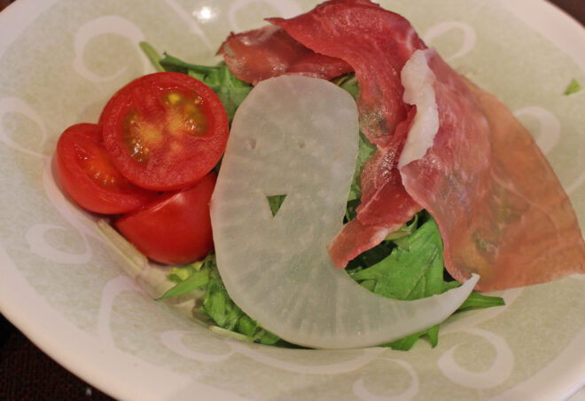 お食事にも大根を切り抜いたオバケが飾られていましたよ👻