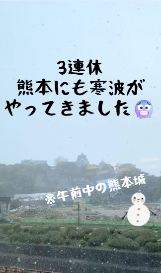 熊本でも午前中は雪が吹雪き、熊本城がかすんでしまう時間帯もありました