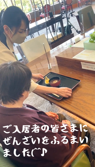 そんな鏡開きの日にちなんでレストランでは、ご入居者の皆さまにぜんざいをふるまいました。
