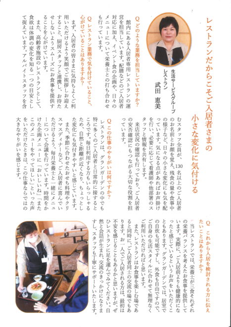 レストランだからこそご入居者さまの小さな変化に気付ける